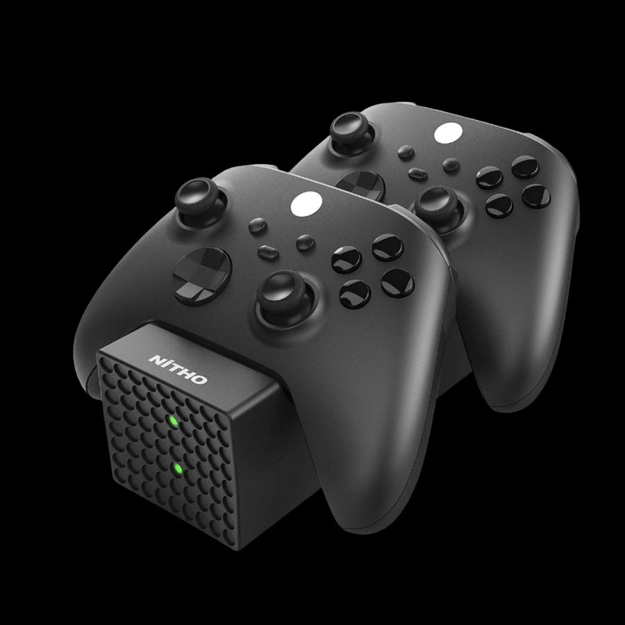 - Universal charging station for two Xbox® Series X/S and Xbox® One controllers
